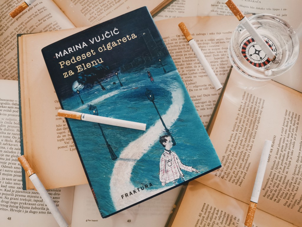 Pedeset cigareta za Elenu sam poželjela za svoj dvadeset i drugi rođendan. Knjiga me mamila, kako svojim sažetkom koji upućuje na neobičnu radnju, tako i svojom predivnom naslovnicom koja budi neobjašnjivu i enigmatičnu nostalgiju, melankoliju. Poželiš ju objesiti na zid, kao nekakvu slikovnu umjetnost.